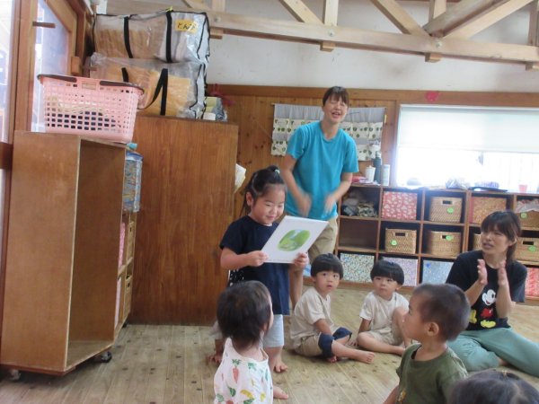 8月の誕生日会をひらきました。今月の絵本は「ひまわり」