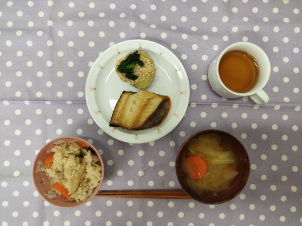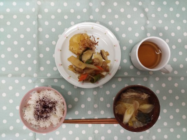 ▼10/27(月)サツマイモのそぼろあんかけ、きのこごはん