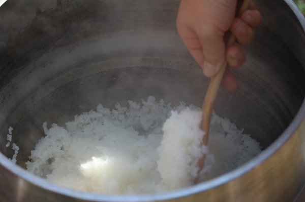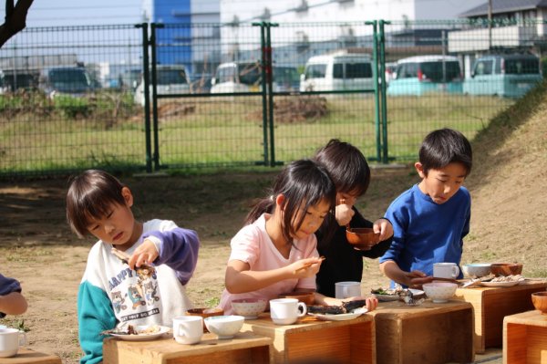 10月30日、園庭でさんまパーティーをしました。炭火でさんまを焼き、年長さんはお米を自分たちで研ぎ、釜で炊いたご飯を食べました。