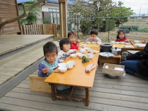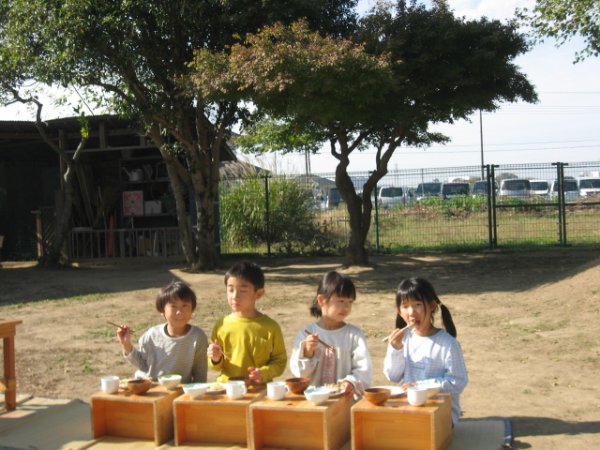 秋晴れの日が続きます。天気がいい日はテラスや庭で昼ごはんを食べています。