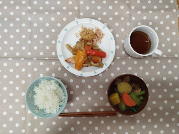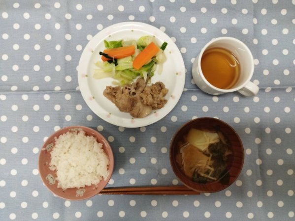 ▼11/18(火)豚肉のしょうゆ麹焼き、野菜炒め