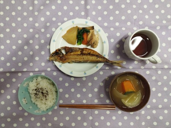 ▼11/25(火)焼魚(アジの開き)、鶏肉と大根の煮物
