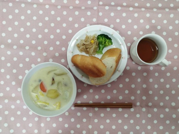 ▼11/26(水)秋野菜シチュー、ブロッコリーともやしのサラダ
