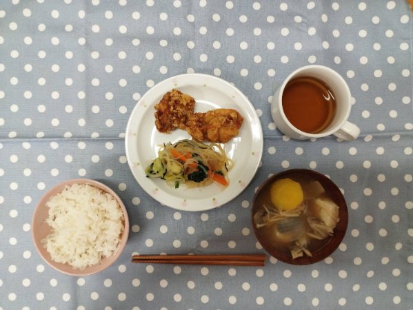 ▼11/28(金)鶏の唐揚げ(照り焼きチキン、和風春雨サラダ