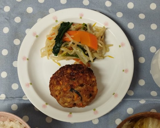 ▼1/14(水)豆腐ハンバーグ、もやしのサラダ