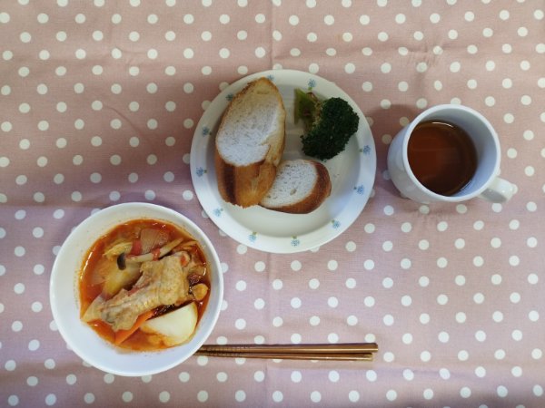 ▼1/21(水)鶏肉のトマト煮、ブロッコリーのおかか和え