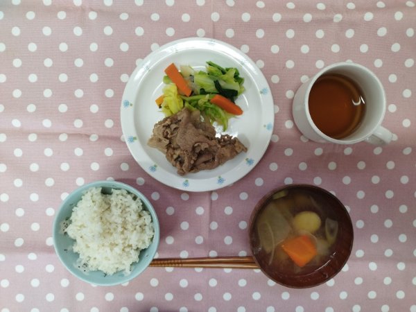 ▼2/5(木)豚肉のしょうゆ麹焼き、野菜炒め