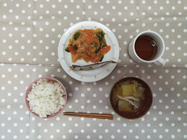 ▼2/9(月)焼魚(ししゃも)、厚揚げと野菜の炒め物