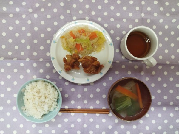 ▼2/13(金)鶏の唐揚げ(鶏の照り焼き)、春雨のサラダ