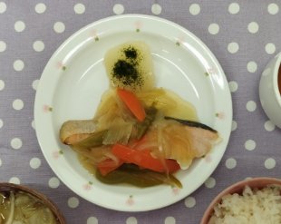 ▼3/19(木)鮭の甘酢あんかけ、こふきいも